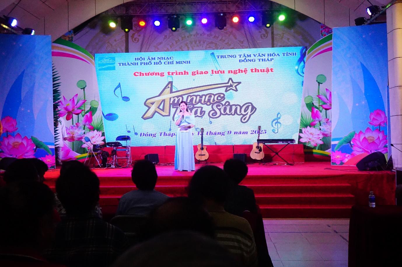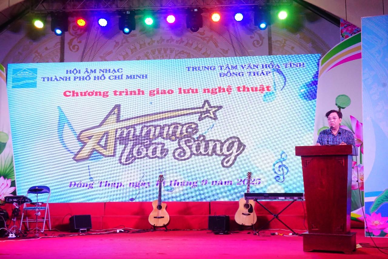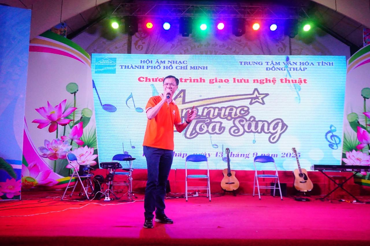 Tối ngày 13/9/2025, Hội Âm nhạc TP. Hồ Chí Minh, phối hợp cùng Trung Tâm Văn hóa Tỉnh Đồng Tháp tổ chức chương trình giao lưu văn nghệ với Chủ đề:“Âm Nhạc Tỏa Sáng”, nhằm giao lưu giữa Nhạc sĩ, Ca sĩ, Hội viên Hội Âm nhạc TP. Hồ Chí Minh và Nhạc sĩ, Ca sĩ, Văn nghệ sĩ Tỉnh Đồng Tháp để thắt chặt tình đoàn kết của 2 đơn vị và cùng nhau phát triển bền vững những giá trị nghệ thuật chính thống để phục vụ công chúng yêu âm nhạc.